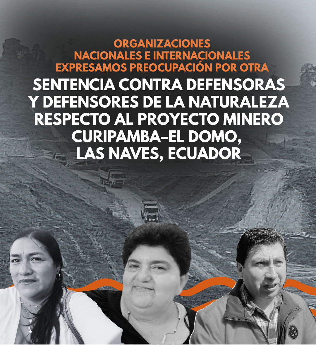 Organizaciones nacionales e internacionales expresamos preocupación por otra sentencia contra defensoras y defensores de la naturaleza respecto al proyecto minero Curipamba–El Domo, Las Naves, Ecuador
