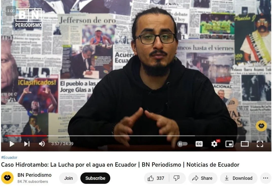 Publicado por BN Periodismo11 de noviembre, 2022— En un integral y llamativo reportaje audiovisual, BN Periodismo cuenta la historia de 18 años de la lucha por el agua, la vida y la soberanía alimentaria de las comunidades de la cuenca del río Dulcepamba.